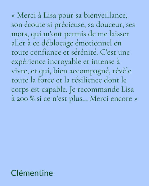 Au cabinet Psycholia, Lisa-Marie Brunet vous offre un espace d’écoute bienveillant pour déposer vos mots et vos maux. Avec authenticité et douceur, elle vous accompagne sur le plan psychologique, mais aussi corporel. Son approche vise à remettre du mouvement là où des freins ou des blocages se sont installés. Chaque expérience, chaque traumatisme, chaque personnalité et chaque pathologie sont accueillis sans jugement, afin de vous aider à vous reconnecter à qui vous êtes, dans toute votre unicité.
